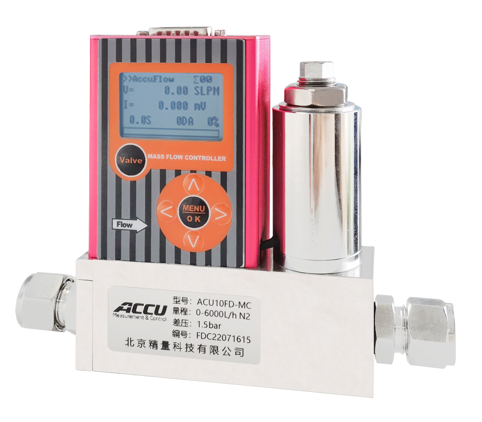 它采用毛細管傳熱前后溫度差量熱法原理測量氣體的質量流量,不受溫度壓力的影響。將傳感器測得的流量信號進行放大,然后與設定的電壓進行比較,用所得的差值去驅動控制調節閥門,閉環控制流過通道的流量使之與設定的流量相等。